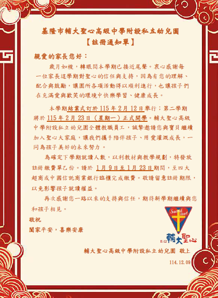 114學年度第二學期註冊收費公告